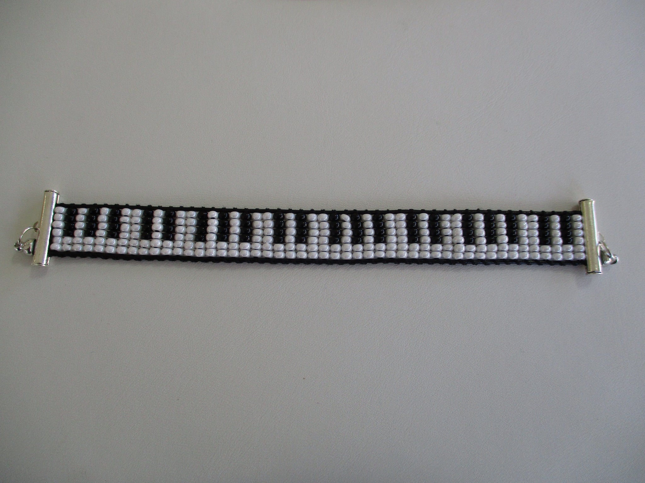 Black Cord sides Black White Silver Seed Beads Loom Bracelet (B569)