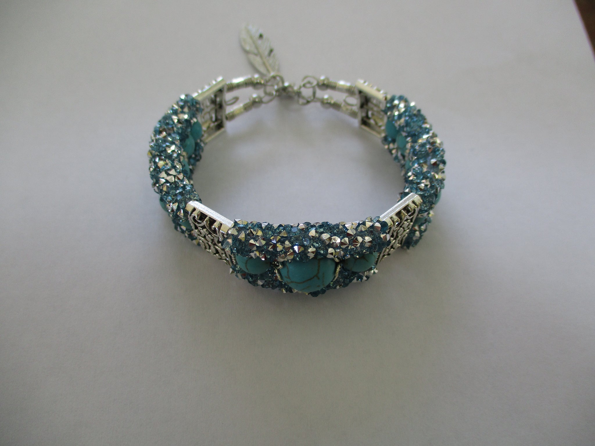 Big Silver Bicone Bead w/ Turquoise Starfish Bracelet (B371)