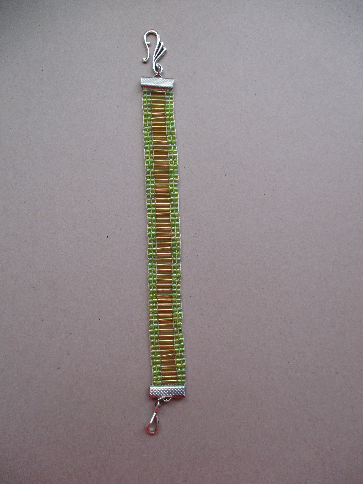 Green Seed Beads Long Gold Seed Beads Loom Bracelet (B564)