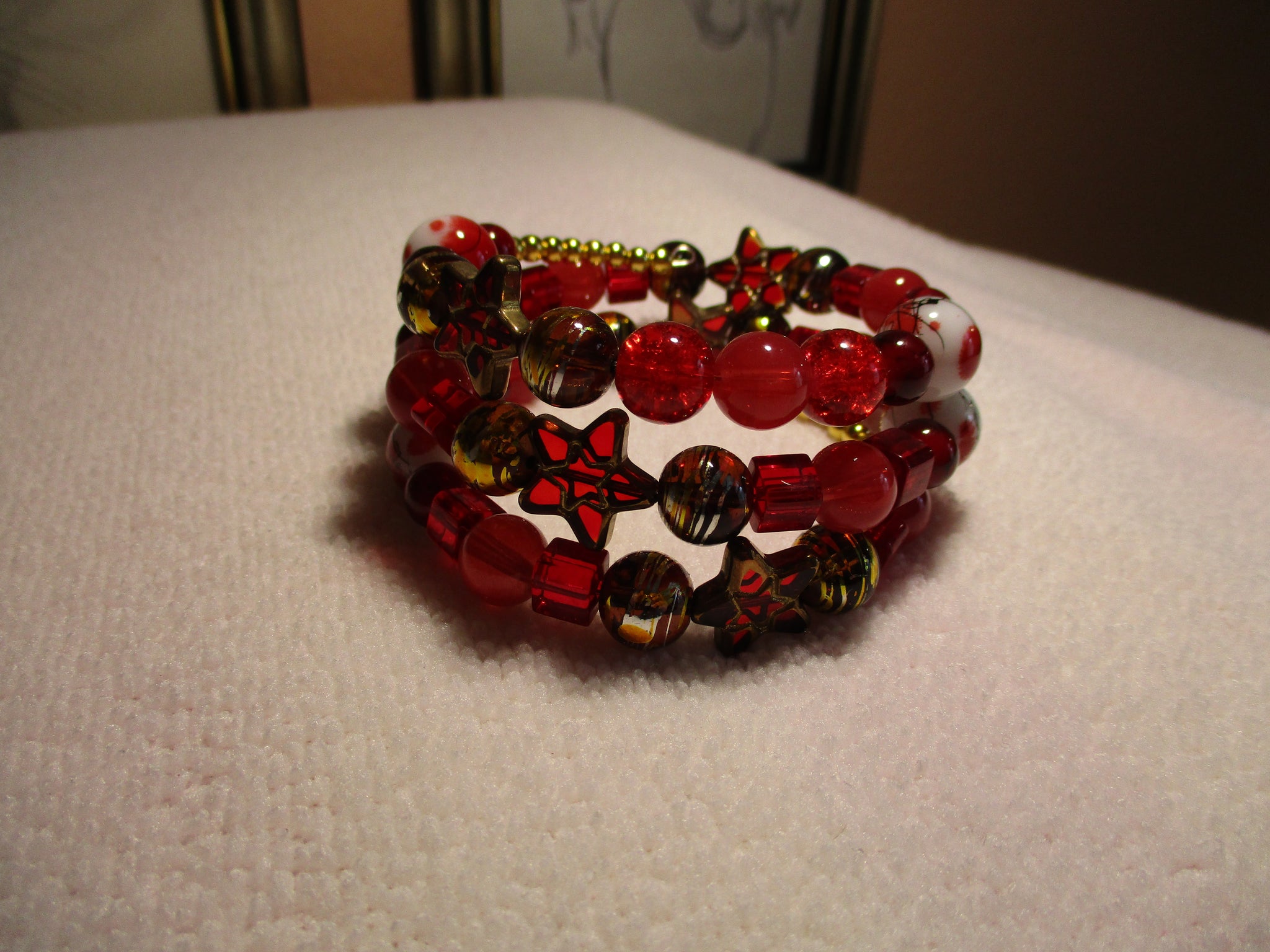 Memory Wire Gold Red Glass Beads Bracelet (B531)