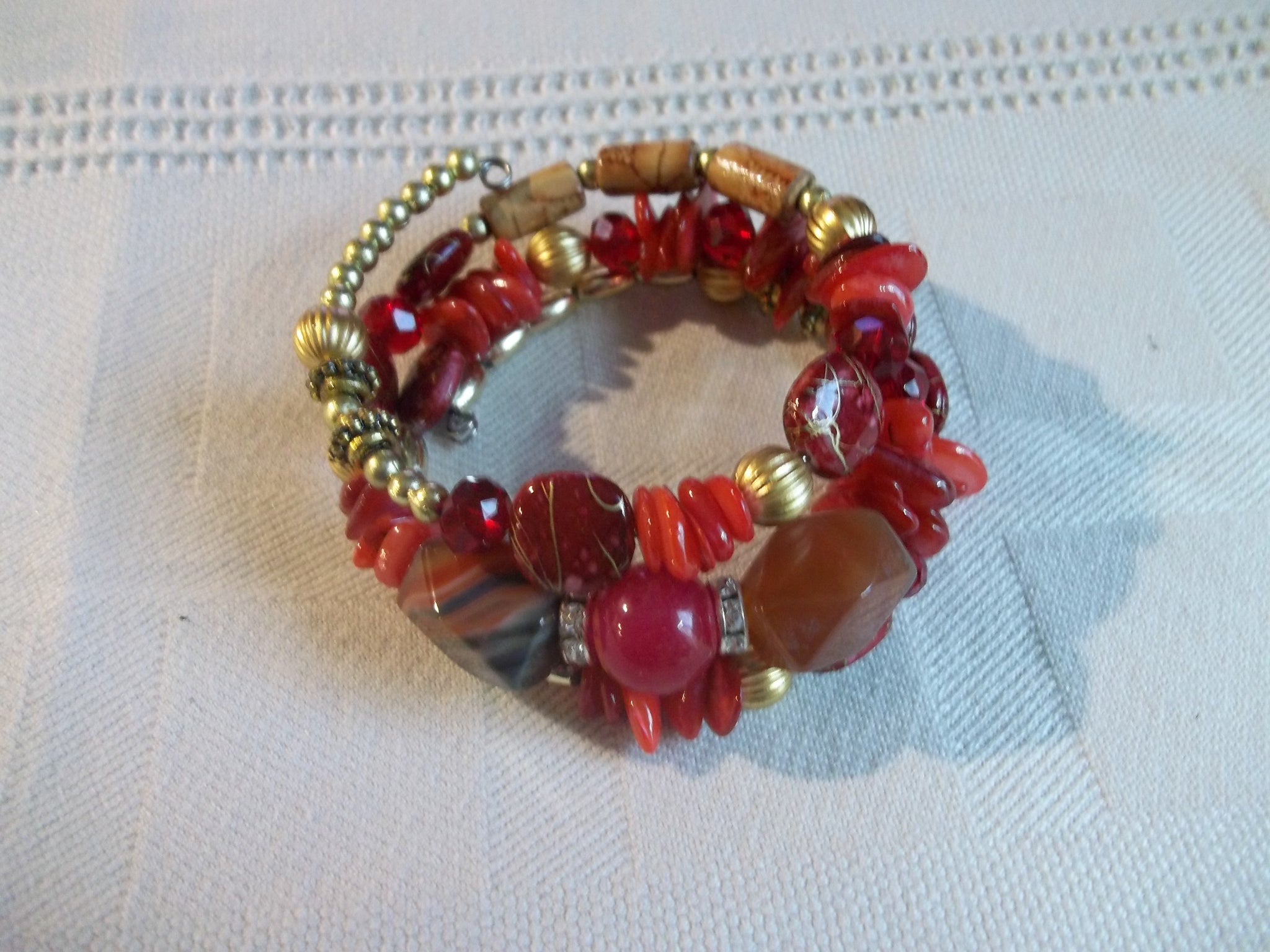 Memory Wire Red Gold Brown Beads Bracelet (B493)