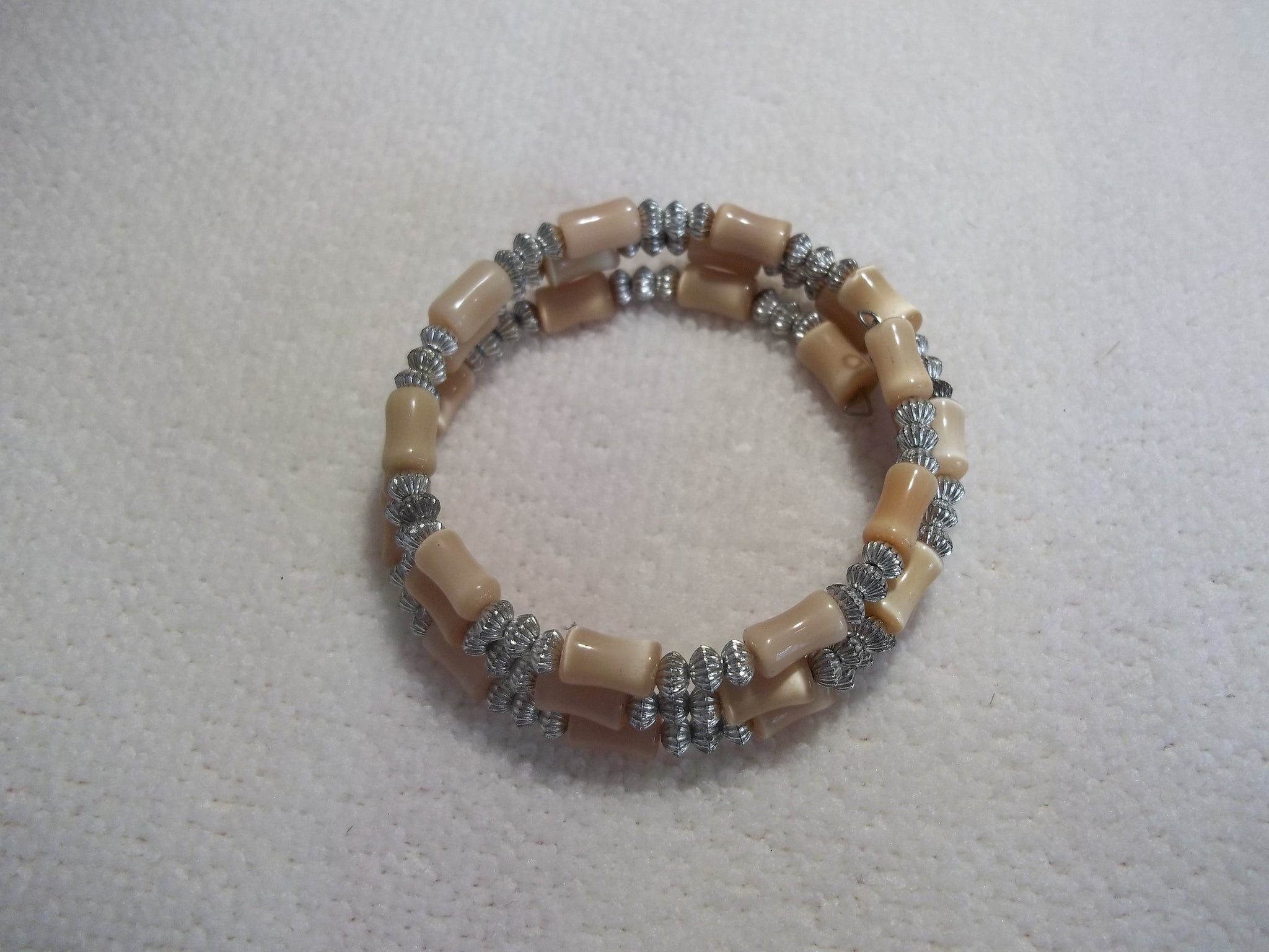 Memory Wire Silver Tan Bead Bracelet (B432)