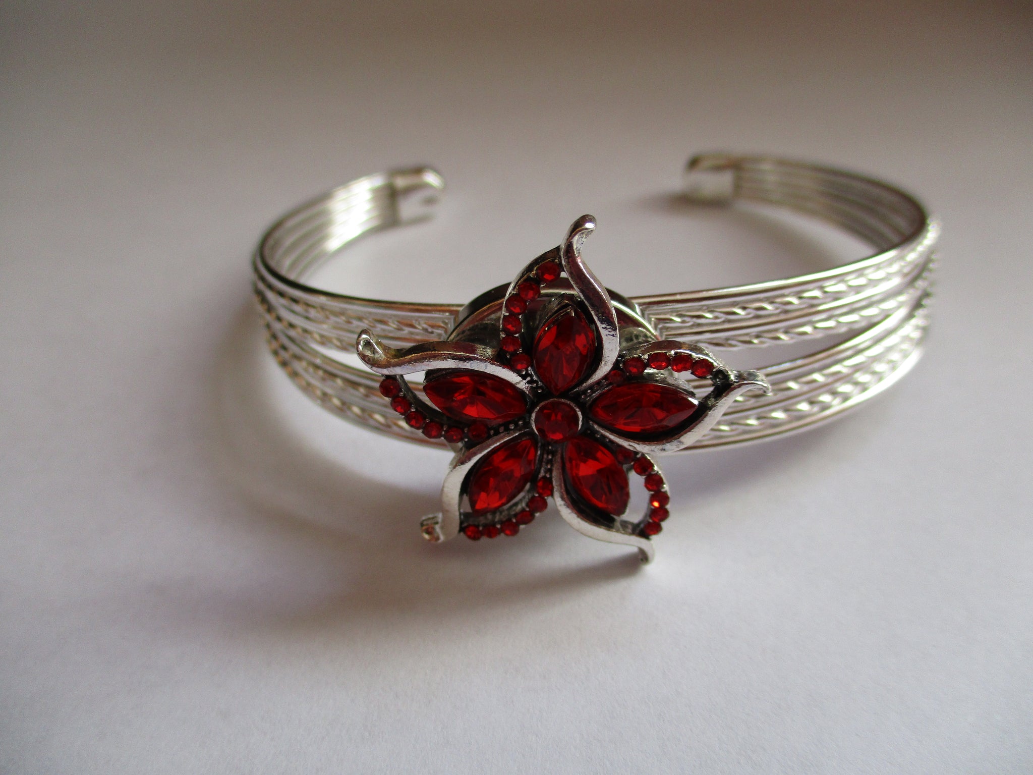 Silver Cuff Red Star Bling Snap Button Bracelet (B539)