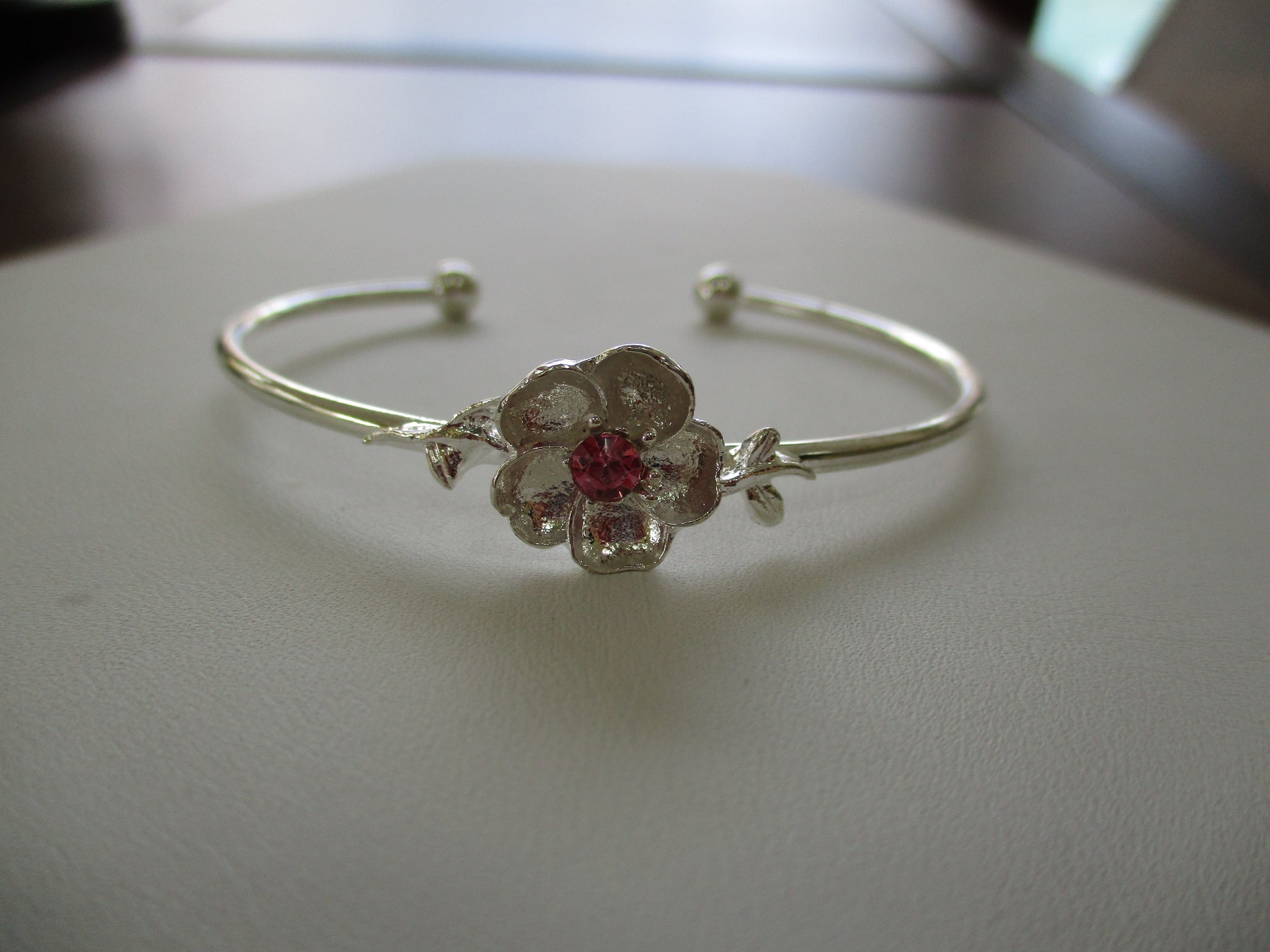 Silver Flower Cuff Bracelet (B686)