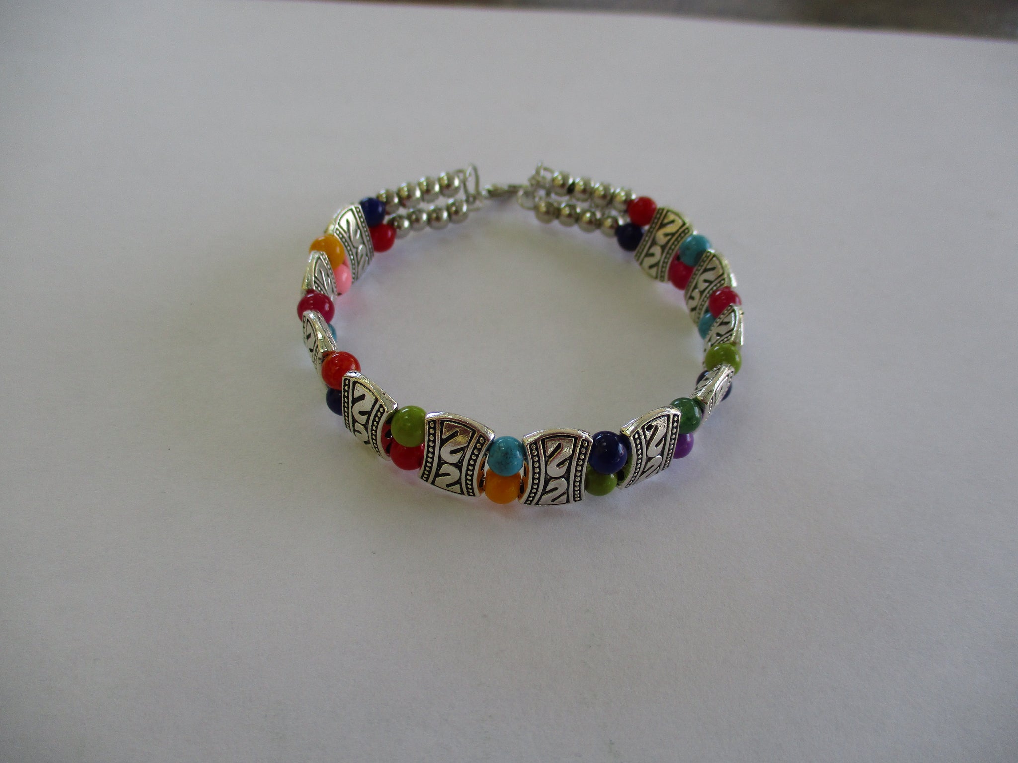Silver Multi Color Beads Memory Wire Bracelet (B598)