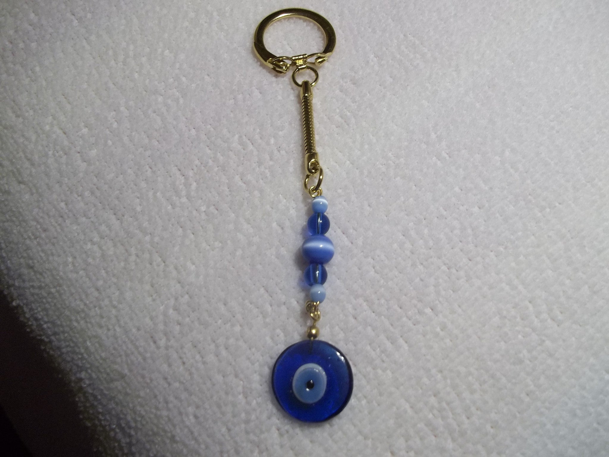 Dark Light Blue Glass Beads Eye Key Chain (K323)