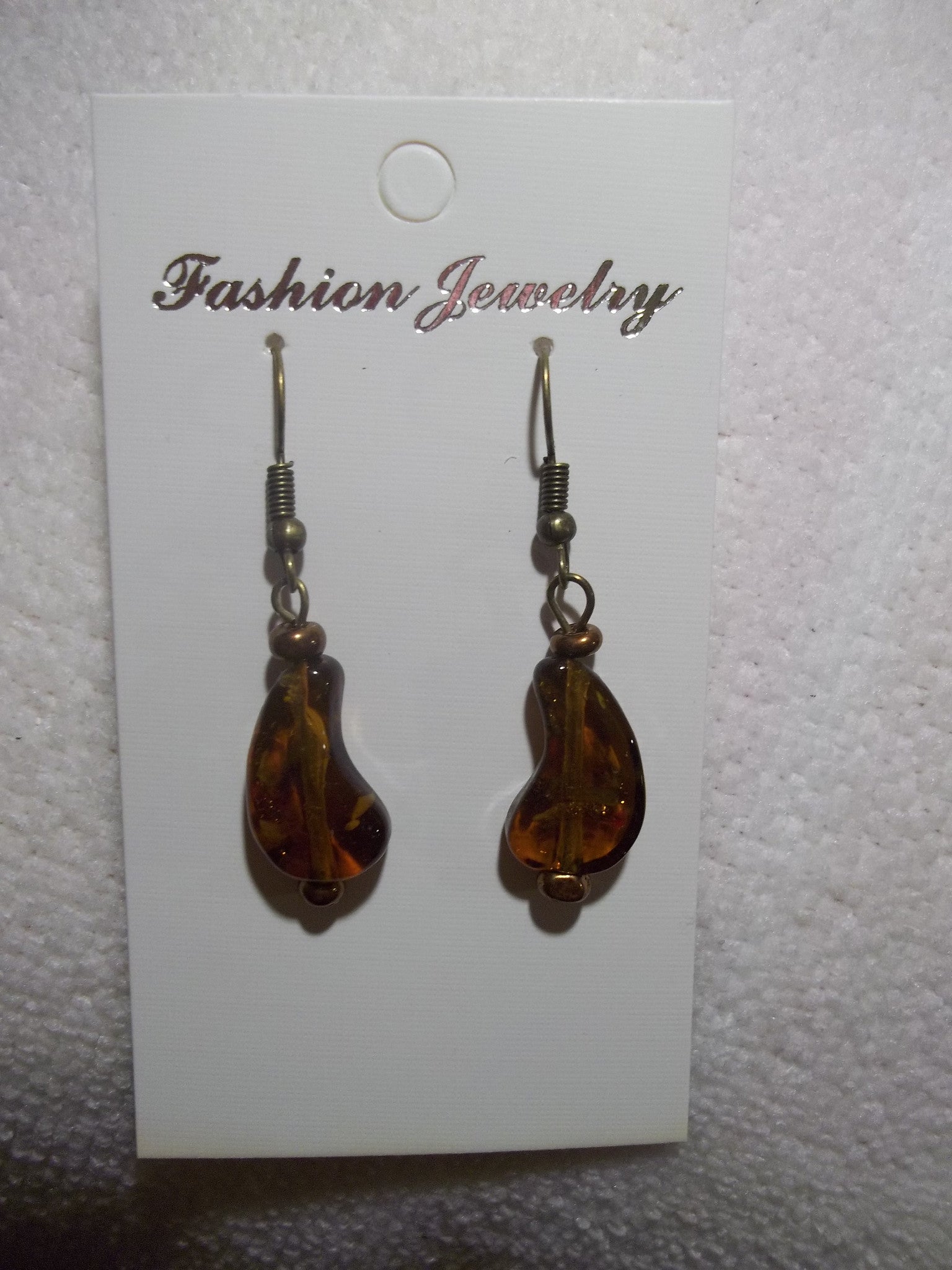 Bronze Brown Glass Curve Shape Earrings (E796)