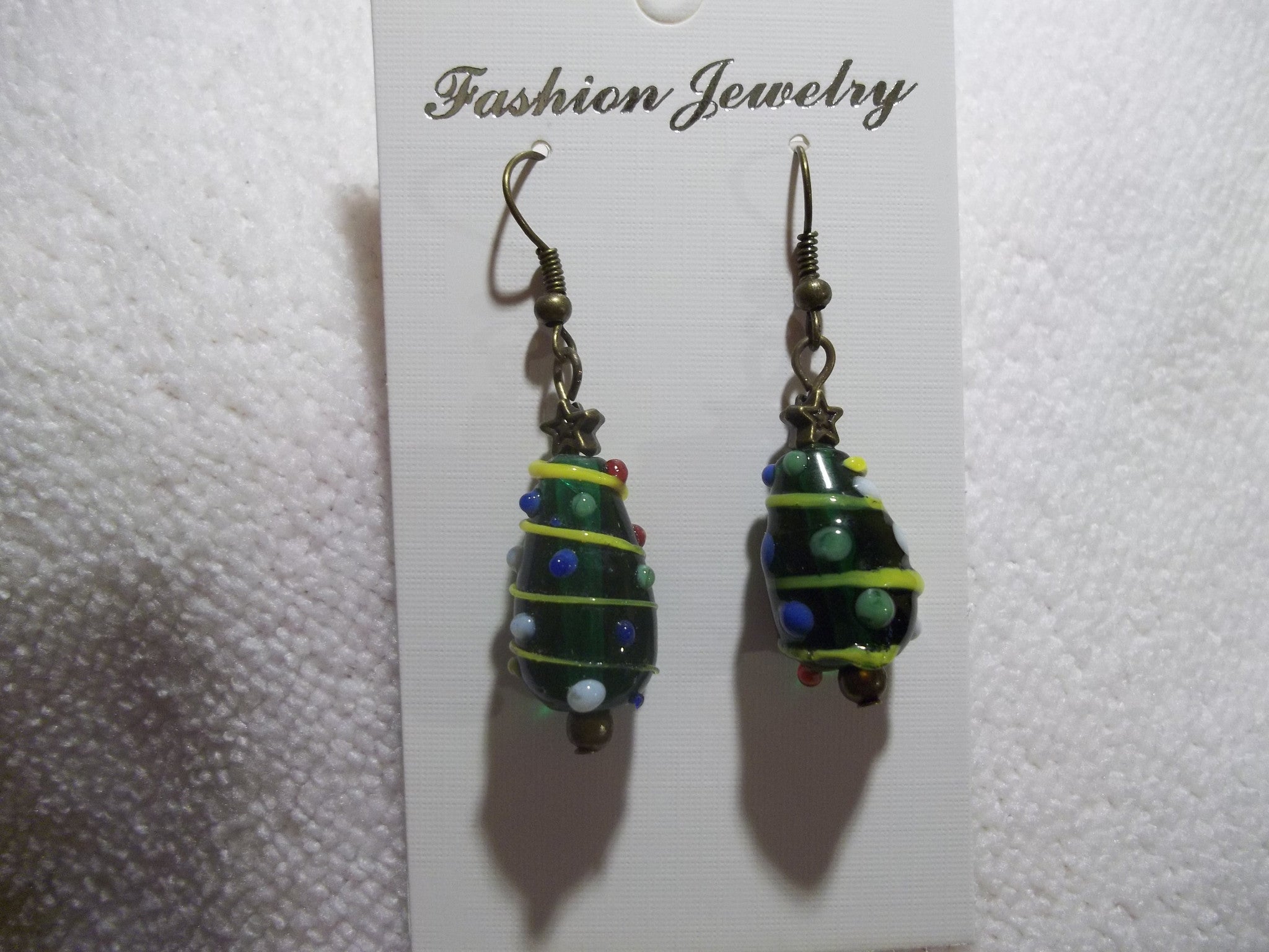 Bronze Glass Christmas Tree Earrings (E758)