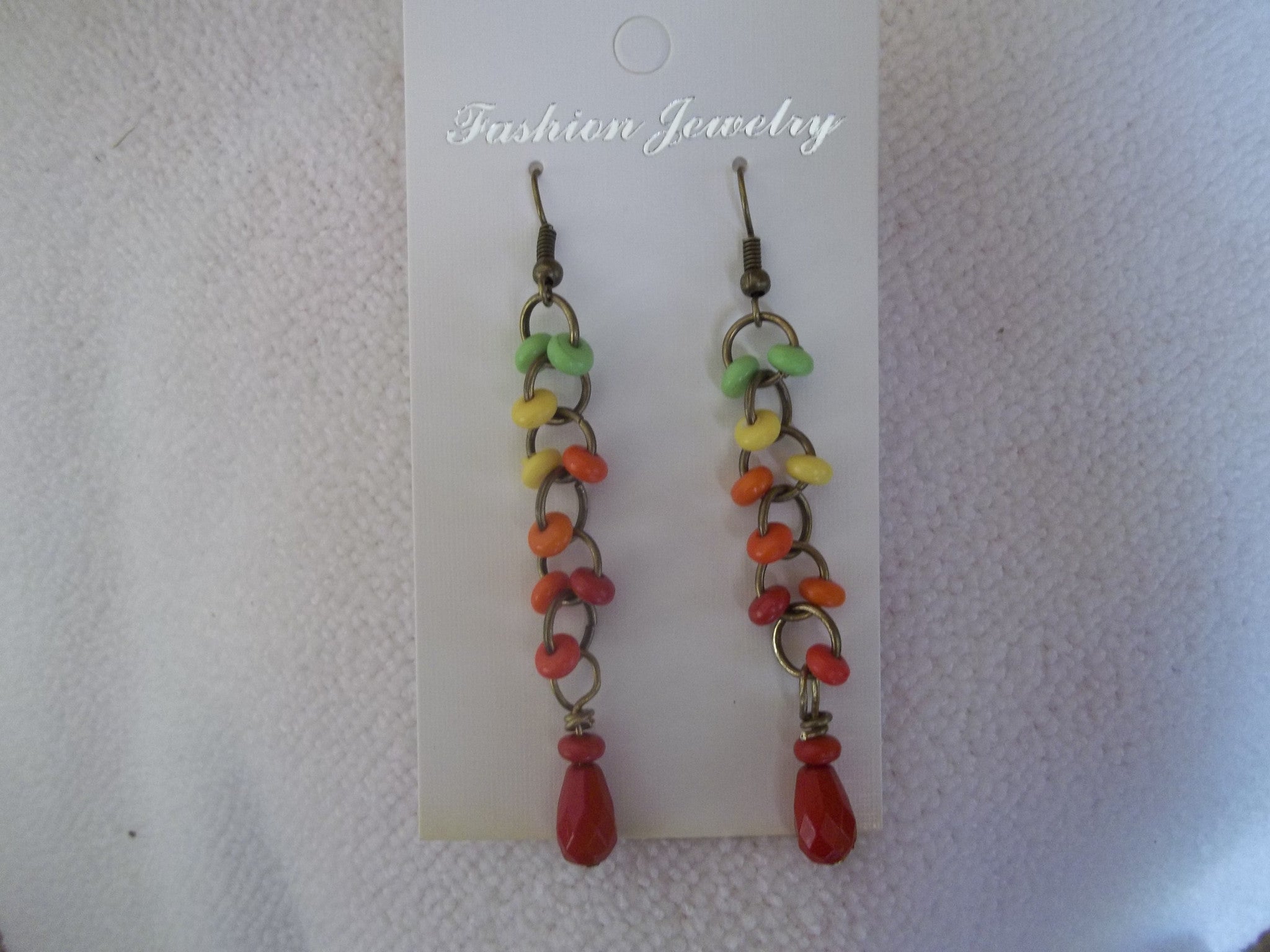 Bronze Multi Color Beads Red Tear Drop Earrings (E775)
