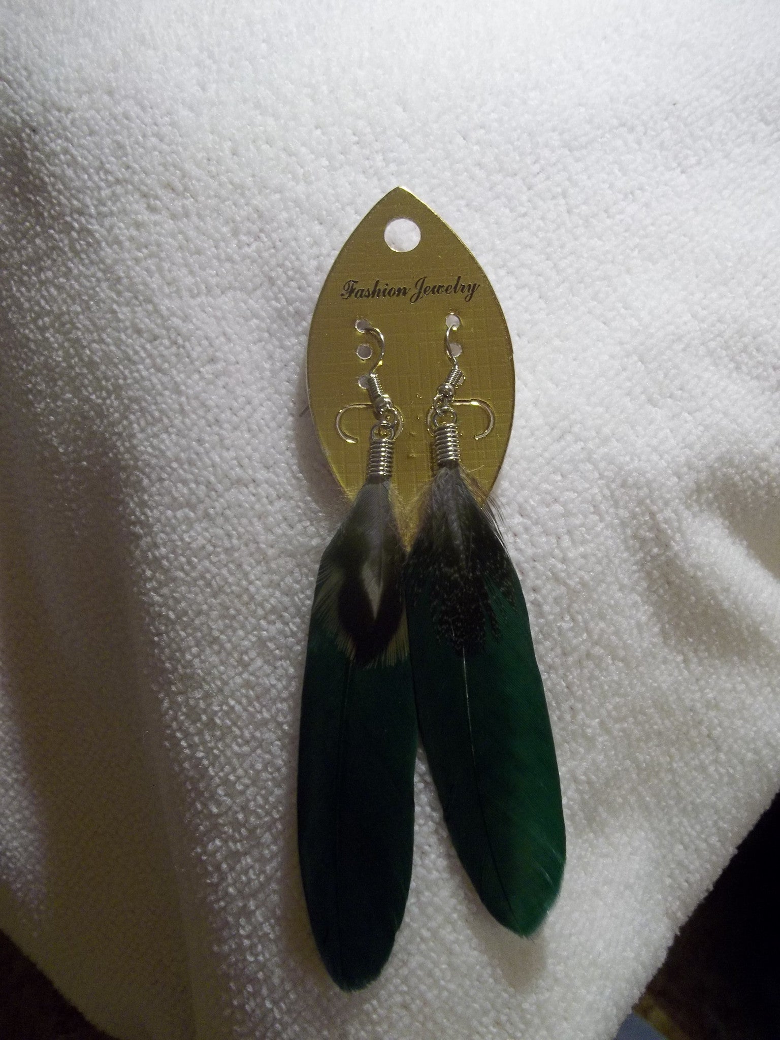 Dark Green Feather Earrings (E783)