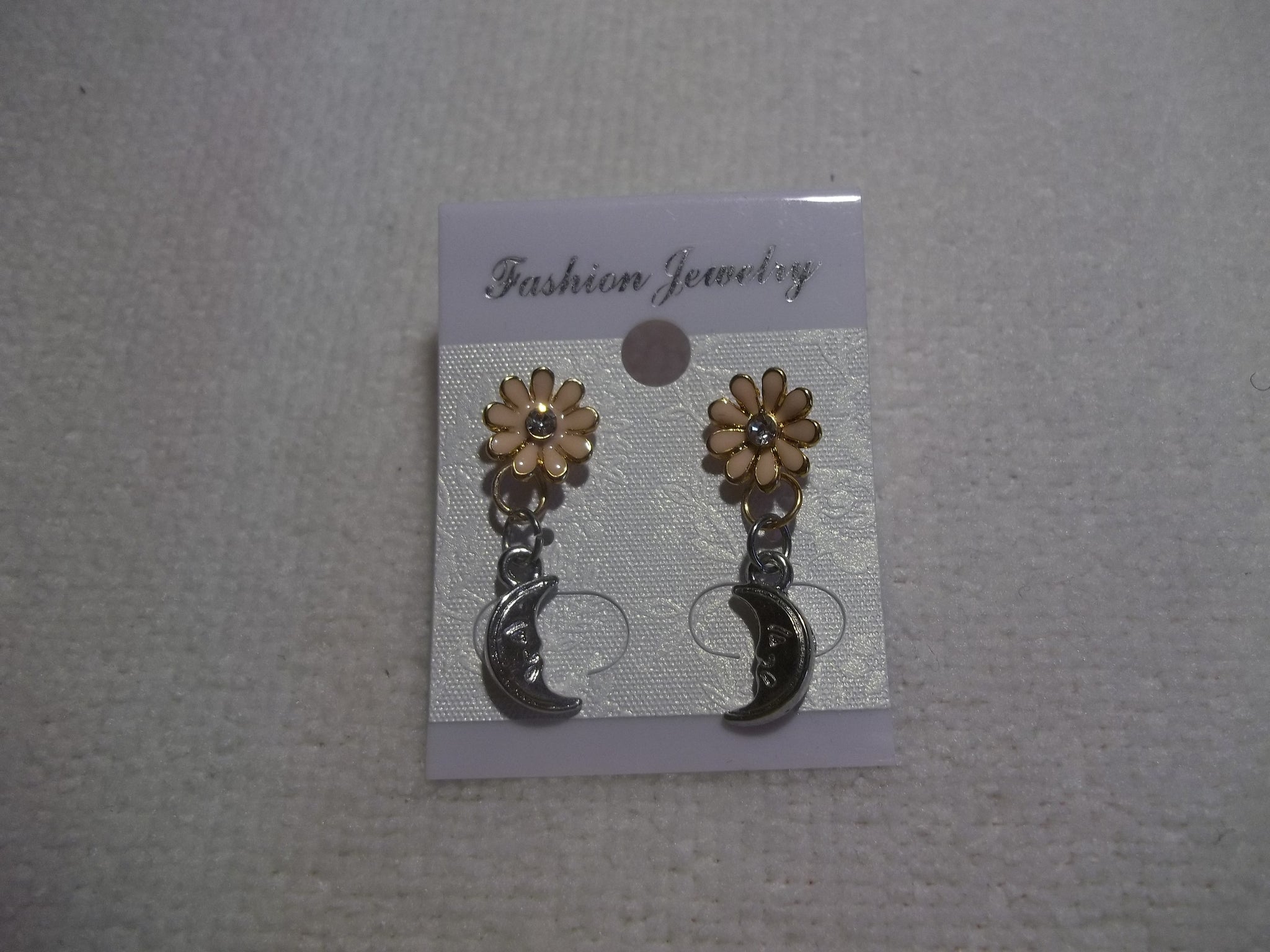 Flower Silver Moon Stud Earrings (E914)