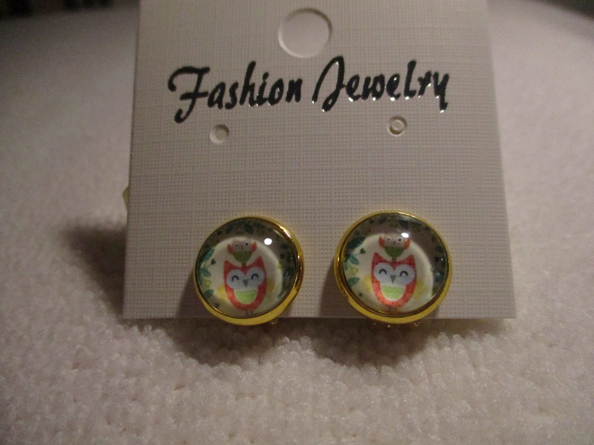 Gold Bubble Orange Owl Clip Earrings (E970)