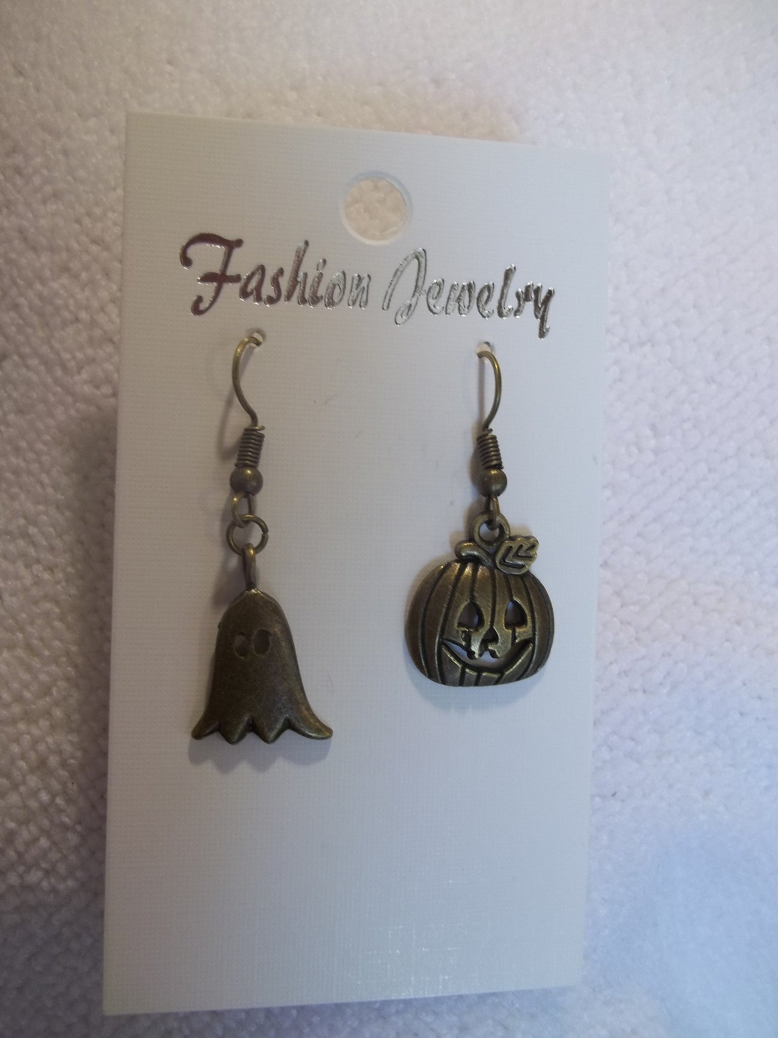 Jack o Lantern Ghost Bronze Earrings (E744)
