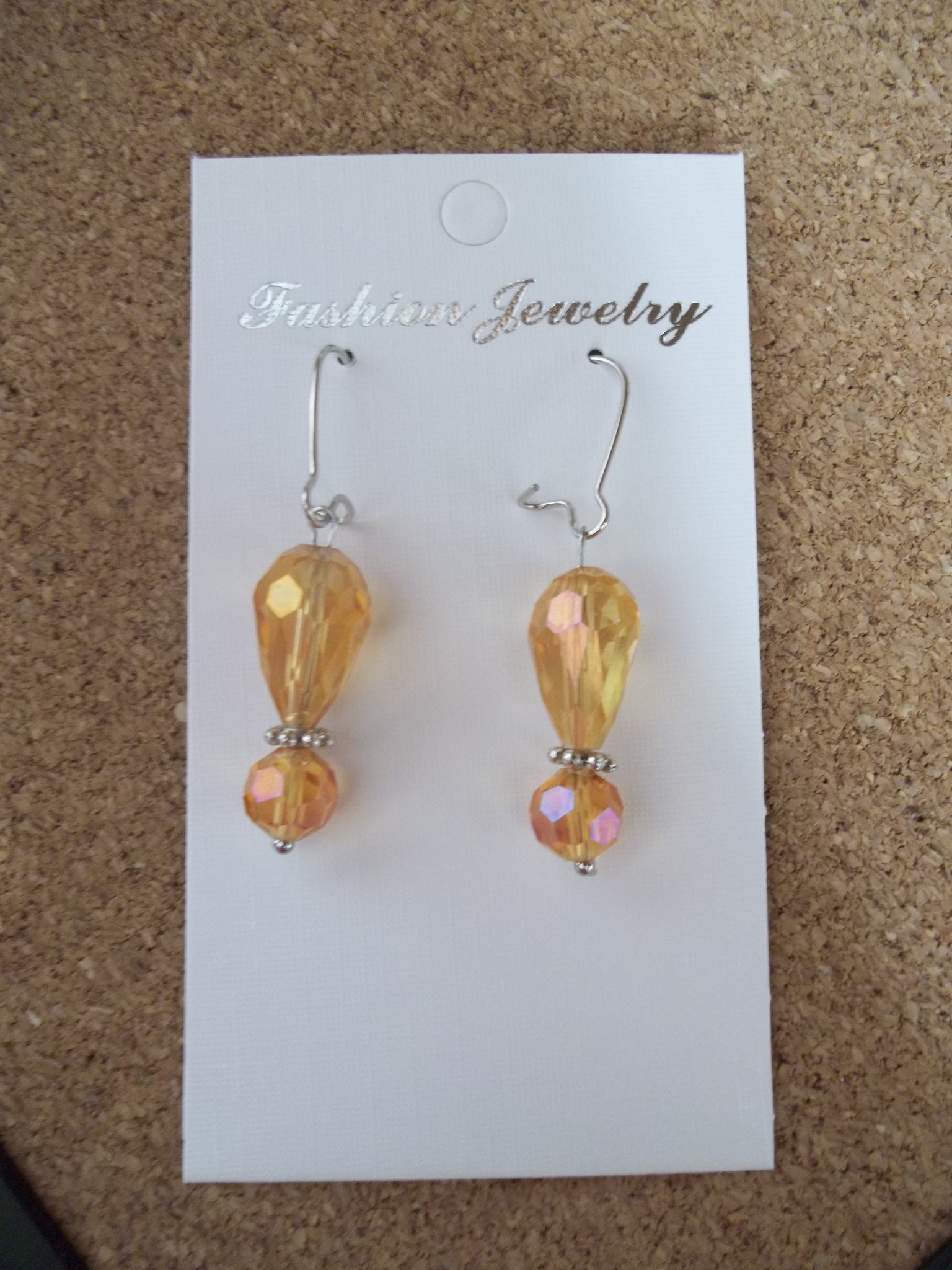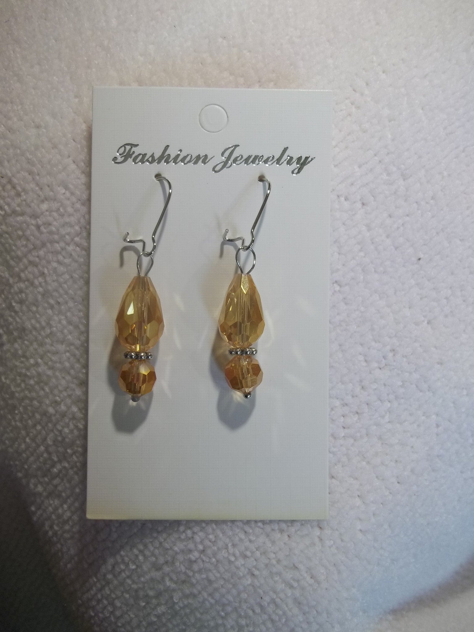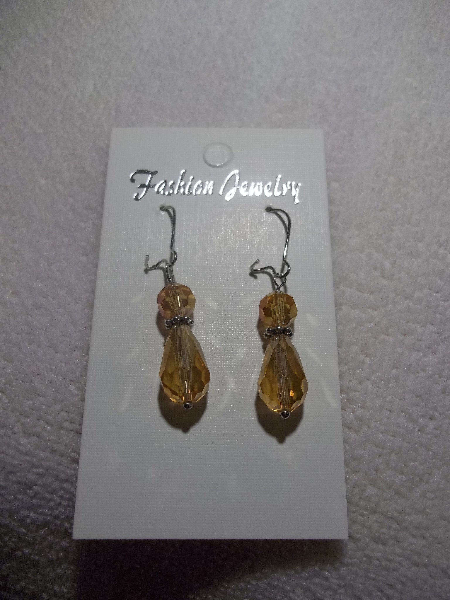 Silver Peach Crystal Tear Drop Earrings (E776)