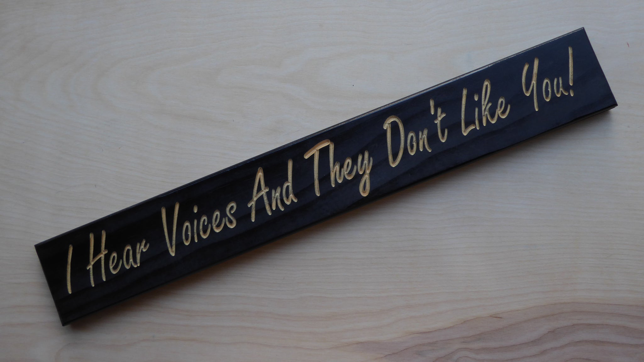 A 3.5 inch tall by 24 inch wide 3/4 inch thick carved wood sign. The back of the sign has keyholes for easy hanging.