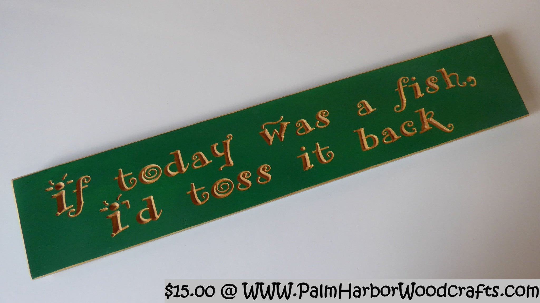A 5.5 inch tall by 24 inch wide 3/4 inch thick carved wood sign. The back of the sign has keyholes for easy hanging.