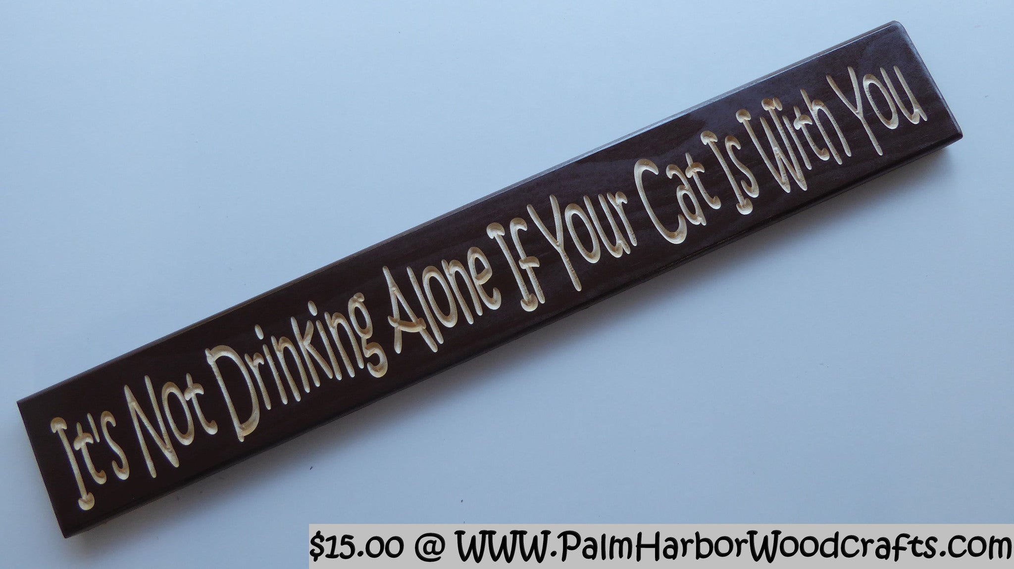 A 3.5 inch tall by 24 inch wide 3/4 inch thick carved wood sign. The back of the sign has keyholes for easy hanging.