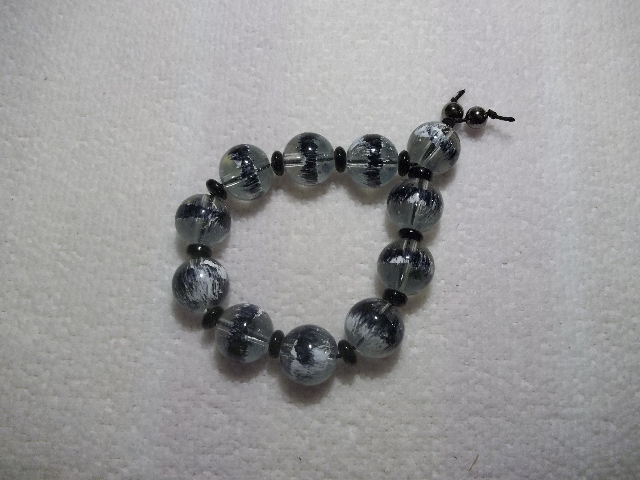3 Rows Blue White Glass Seed Beads, Clear Acrylic Beads, Silver Blue Bib Pendant Necklace (N991)