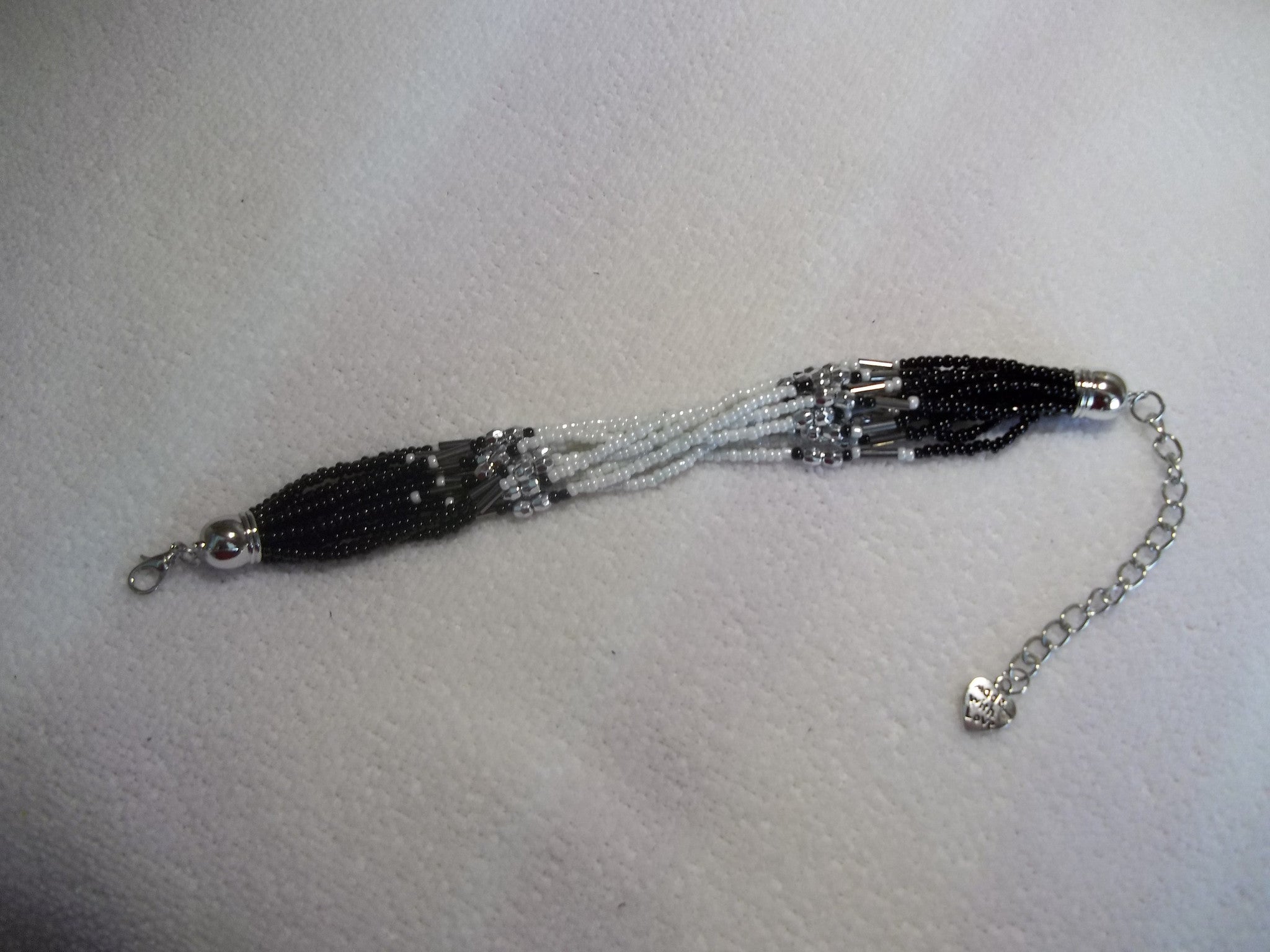 3 Rows Blue White Glass Seed Beads, Clear Acrylic Beads, Silver Blue Bib Pendant Necklace (N991)