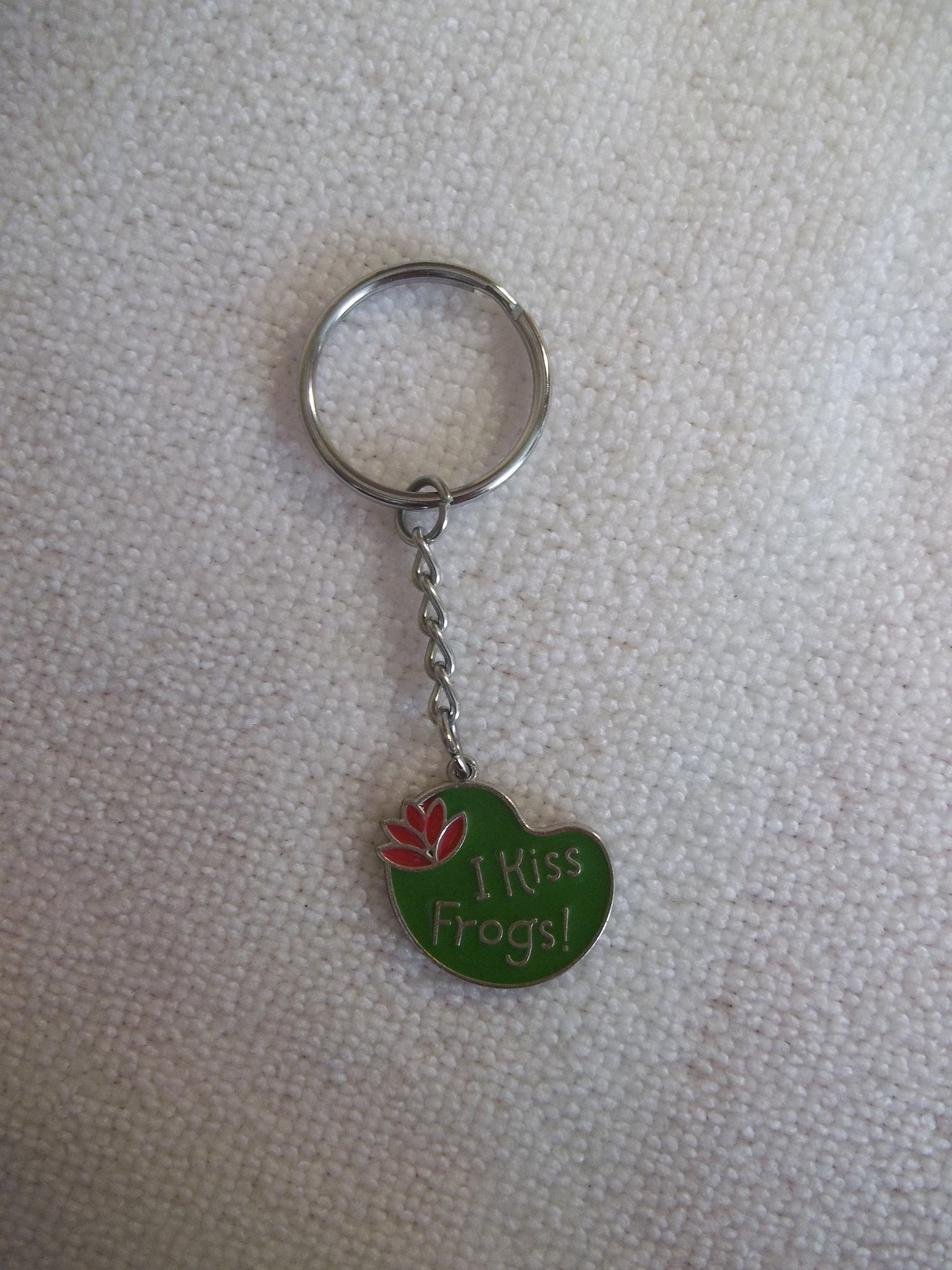 Silver Green "I Kiss Frogs" Lilly Pad Key Chain (K343)