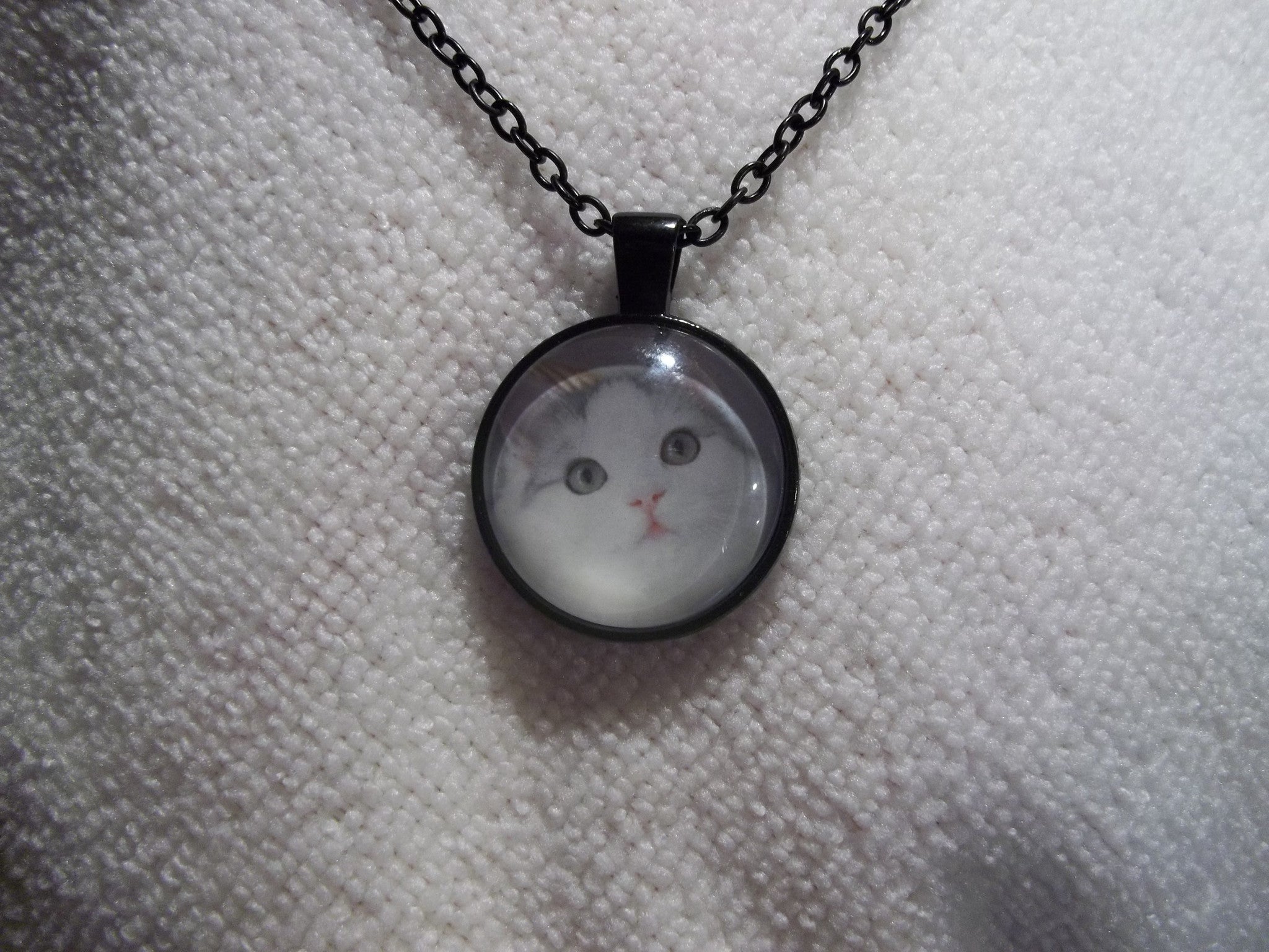 Black Bubble Gray Eye White Cat Necklace (N648)