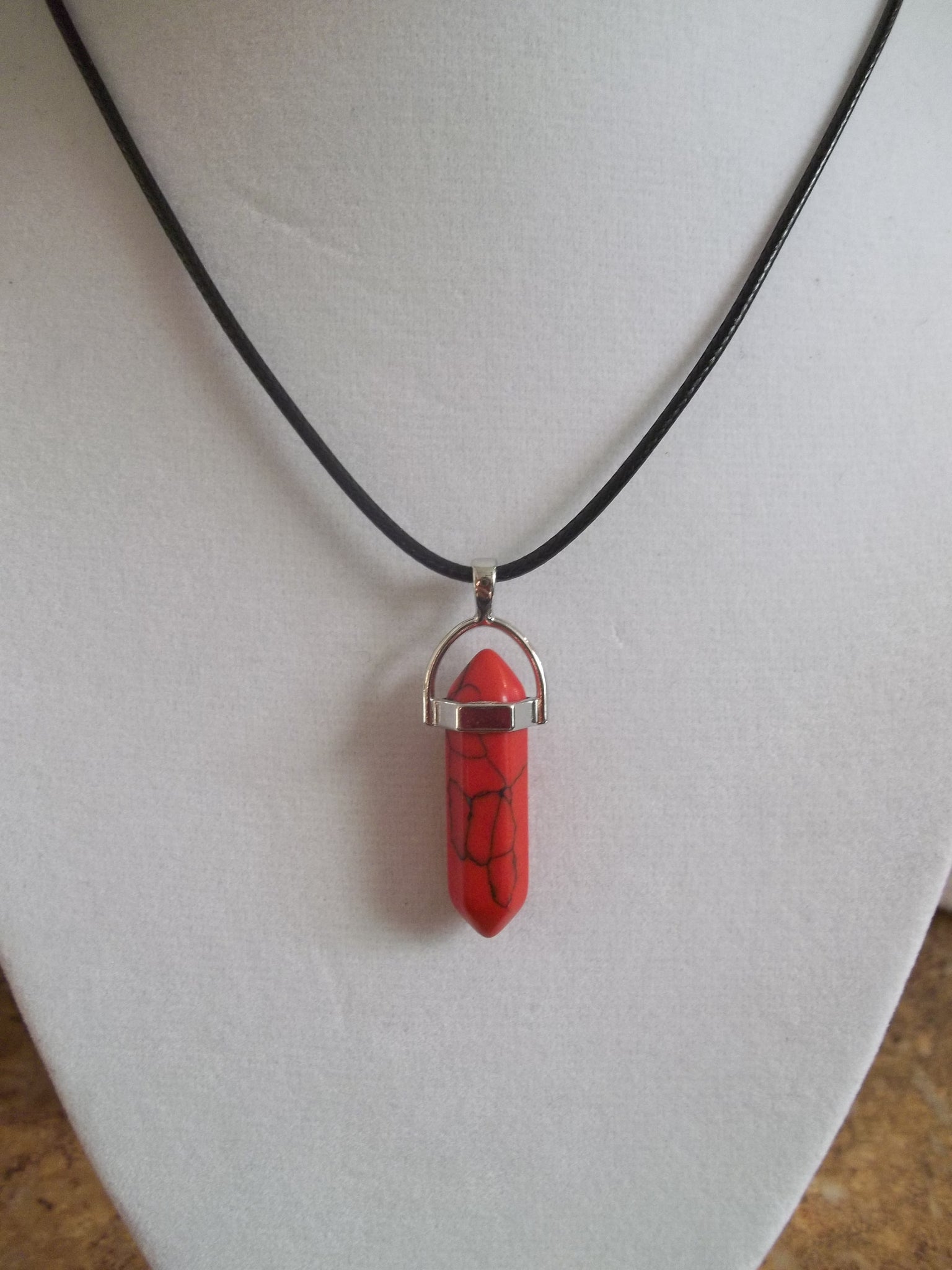 Black Leather Red Crackle Healing Crystal Necklace (N809)