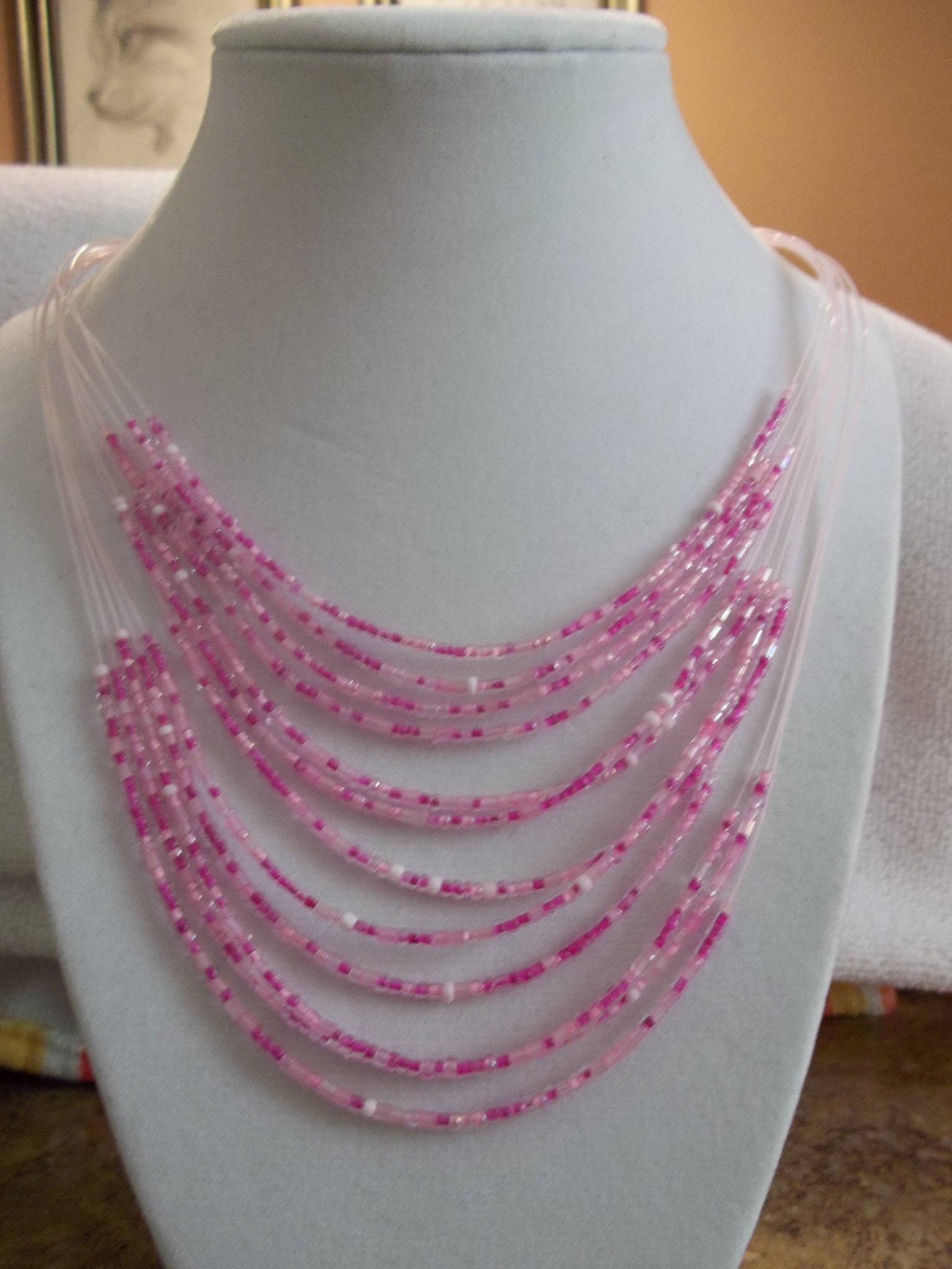4 Strands Pink Crystal Light Green Pearls Glod Pendant Choker Necklace (N1250)
