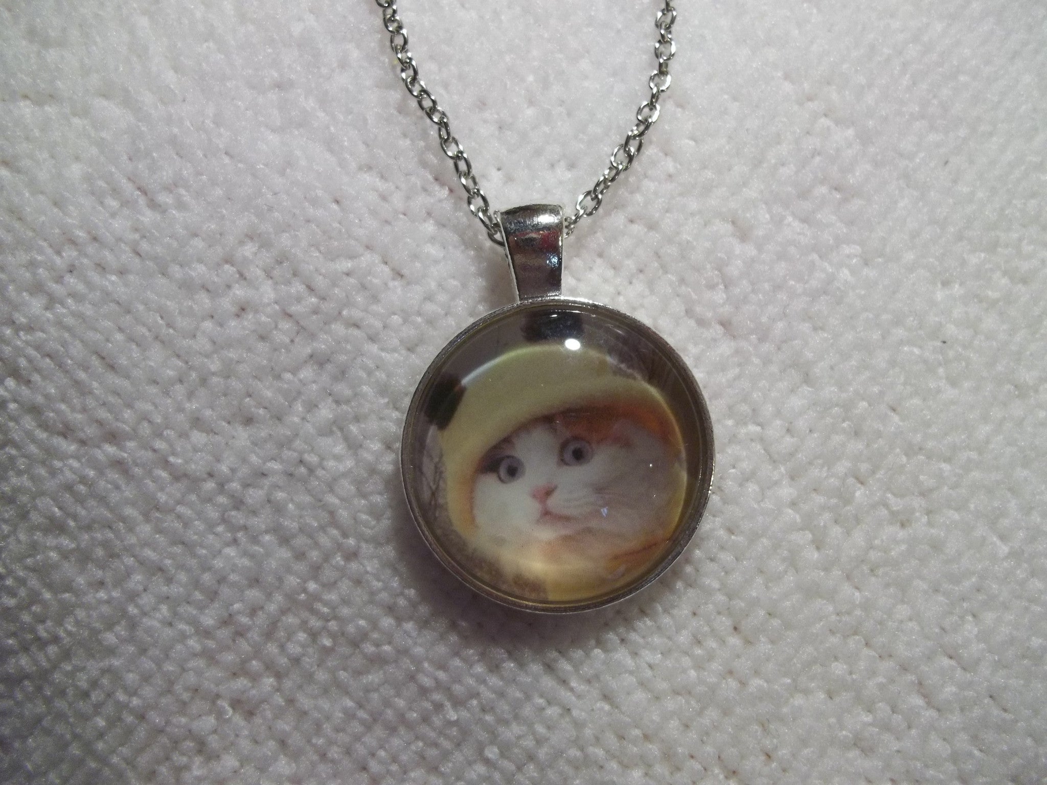 Silver Bubble Kitten w/Hat Necklace (N643)