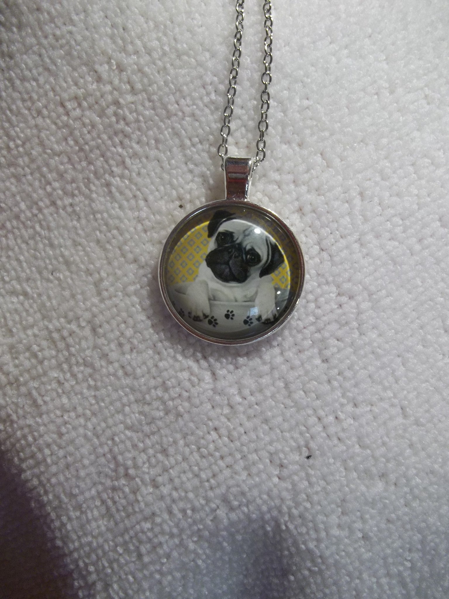 Silver Bubble Pug Puppy Necklace (N741)