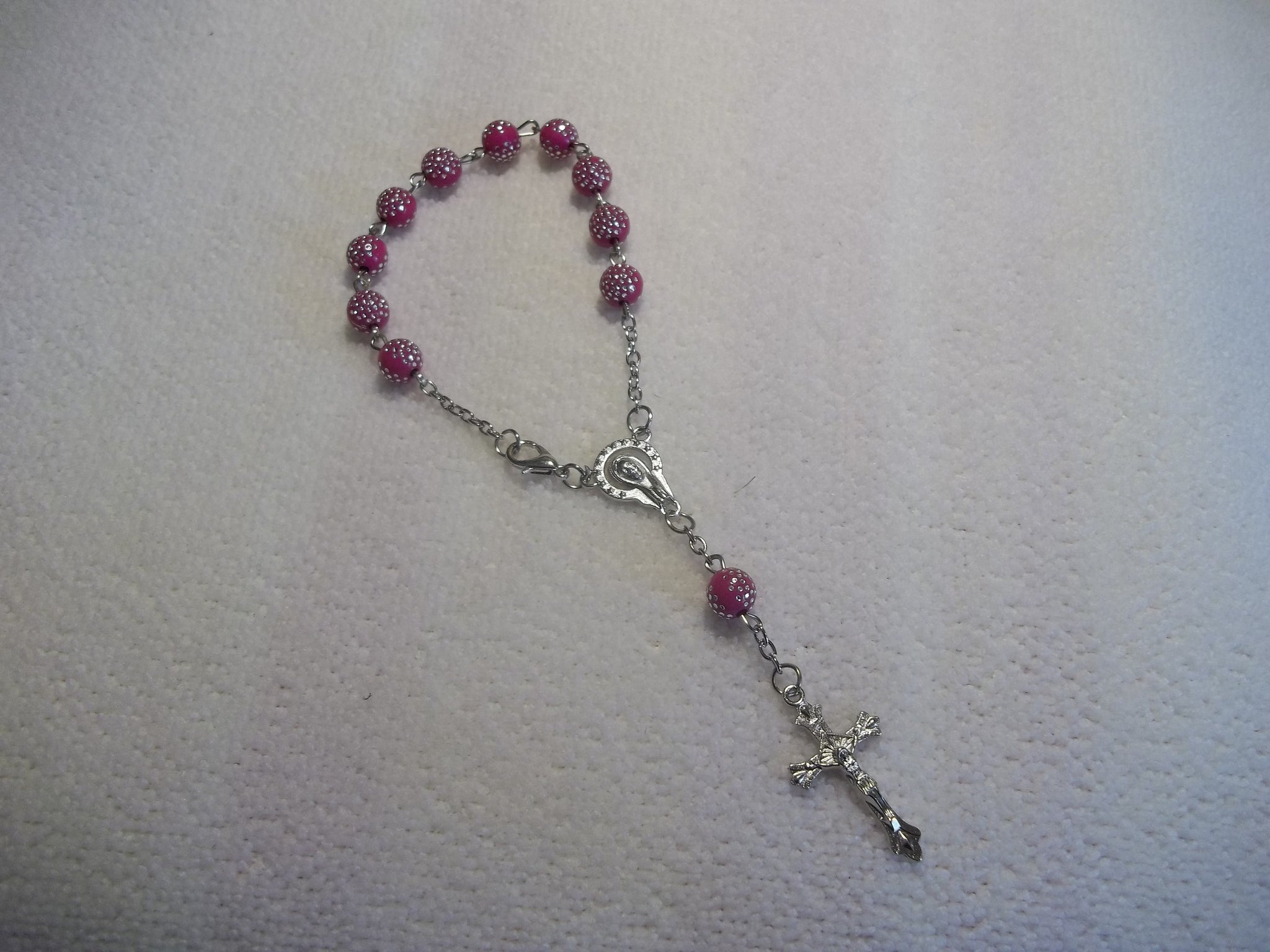 Pink Silver Dots Bracelet Rosary (R107)