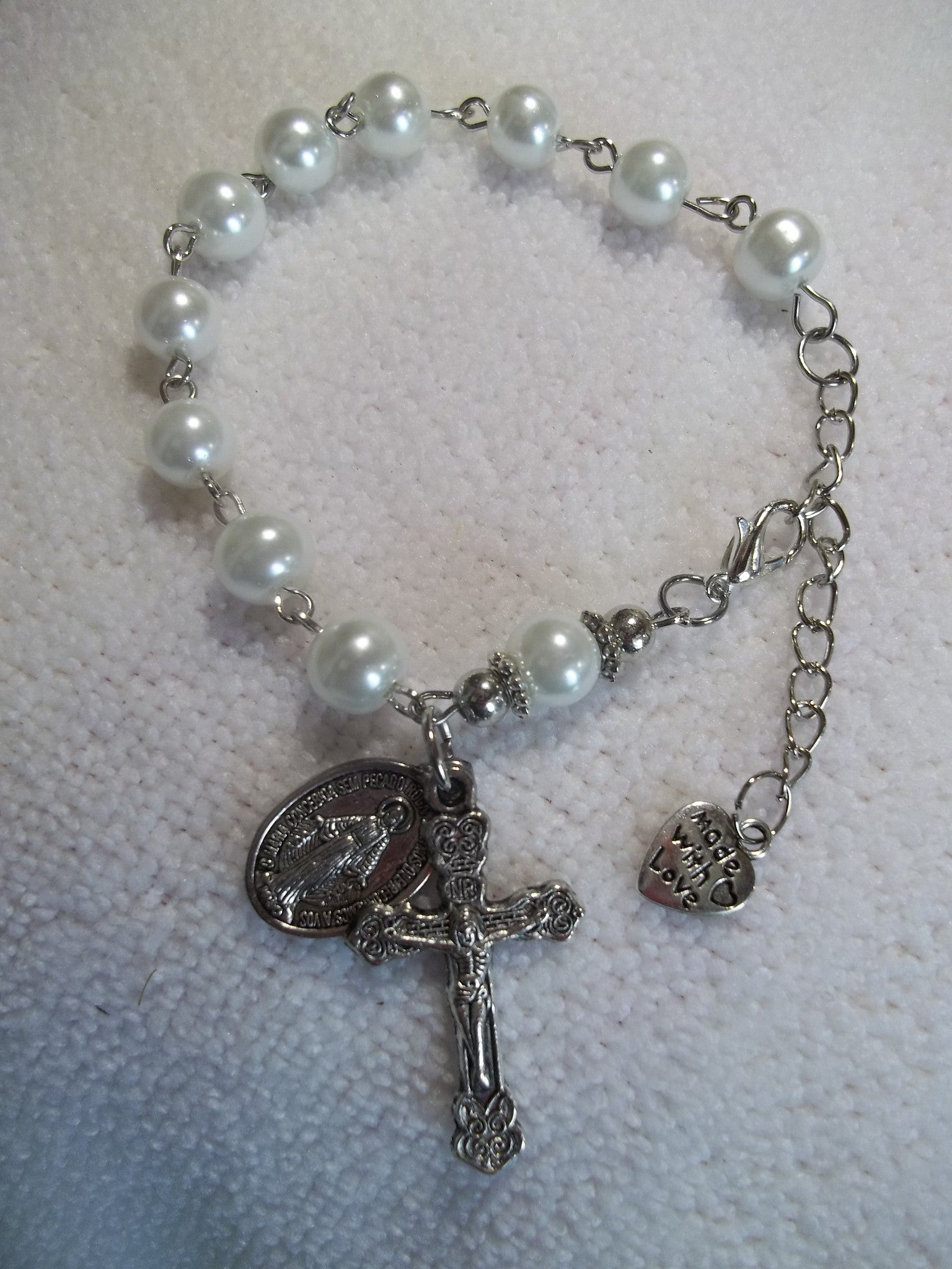 Silver White Pearls Bracelet Rosary (R105)