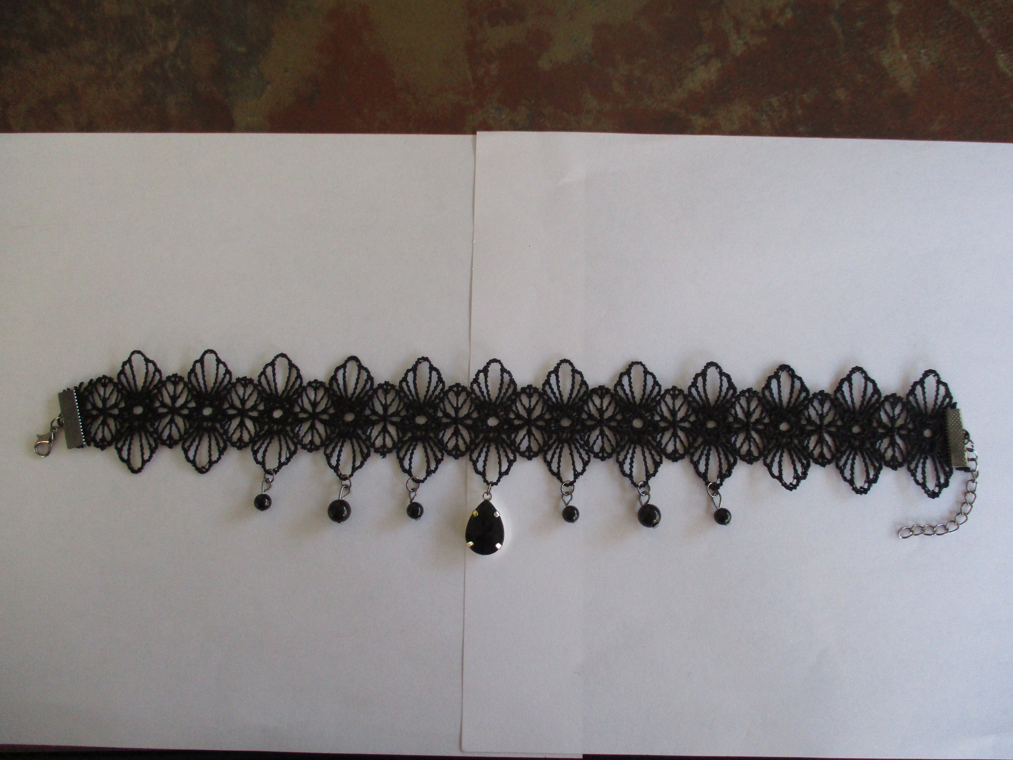 Black Lace Black Glass Beads Tear Drop Pendant Dark Gray Closure Choker Necklace (N1397)
