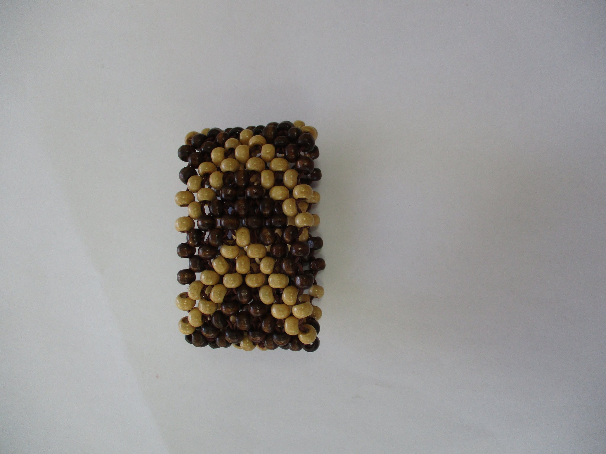 Dark Brown, Tan Wooden Beads Stretch Bracelet (B661)