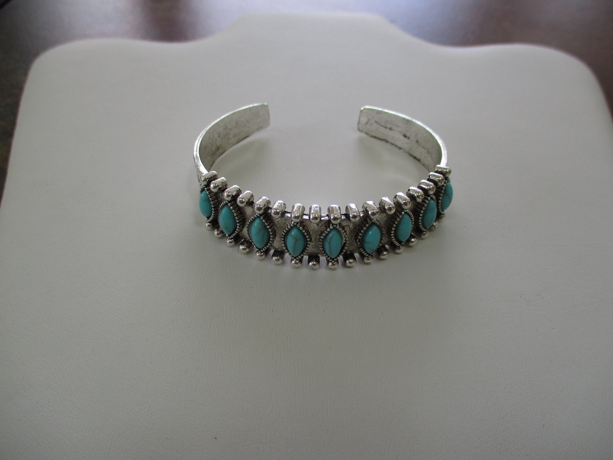 Big Silver Bicone Bead w/ Turquoise Starfish Bracelet (B371)